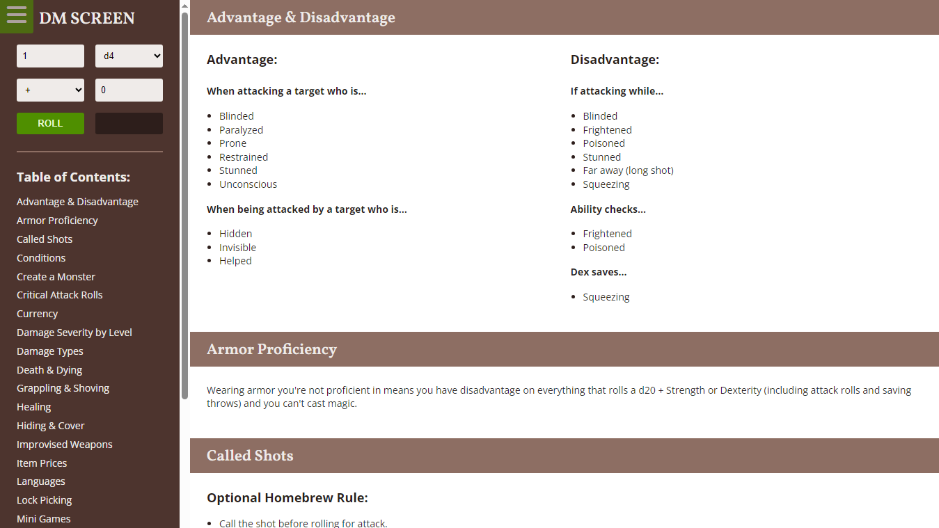 If you’ve ever played a tabletop RPG, you know how wonderfully chaotic things can get. As the game master, I’m always looking for ways to keep sessions running smoothly without losing that energy. This page has become a simple but powerful tool for me—helping me stay organized and quickly reference rules during play. It’s designed with D&D 5E in mind, along with a sprinkle of homebrew ideas I like to use at my table.