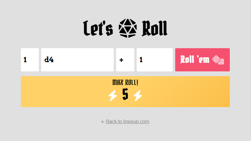 Super simple project with unlimited uses. Roll for damage, roll for initiative, or maybe even roll to see what movie you're going to watch tonight.